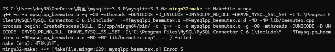 MySQL Connector C 6.1 mingw32编译问题(e=5 拒绝访问)